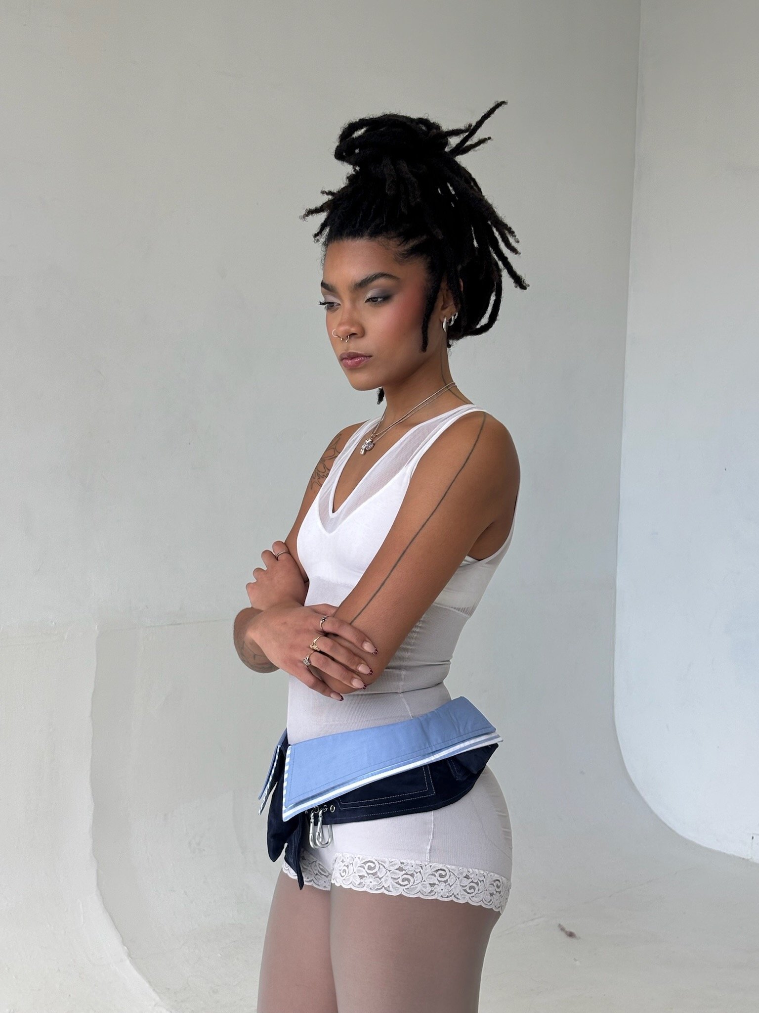 A multi-color utility belt featuring a front button up closure, back adjustable buckle closure, and four fully functional pockets designed for daily items, tools, or accessories – finished with metal grommets along the edge for hanging items such as keys, headphones, charms, or additional gear.