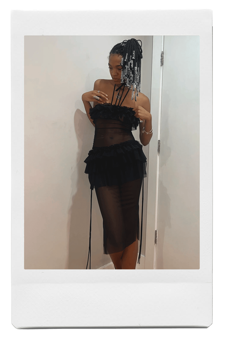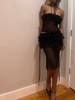 adorned with layered ruffles around the hip + bust. the top also has built in drawstrings on both sides and around the bust to allow for personalization + a comfortable fit.